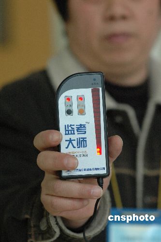 1月19日下午,江蘇常州考點內(nèi)工作人員用“監(jiān)考大師”工具對考生手機信息進行監(jiān)測。2008年1月19、20日兩天,是全國研究生入學統(tǒng)一考試的日子。江蘇全省各考點啟用了先進的無線監(jiān)測裝置,嚴防考生作弊。中新社發(fā) 楊素平 攝