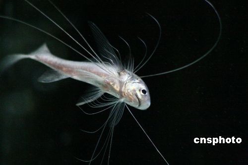 3月16日,“千手觀音”魚在上海海洋水族館展出。這種珍稀魚類名叫長(zhǎng)指馬鲅,是該館最近引進(jìn)的。長(zhǎng)指馬鲅主要分布在南亞地區(qū)的海域中,腹部長(zhǎng)著很多細(xì)線狀的鰭條,俗稱“千手觀音”。中新社發(fā) 穎慧 攝