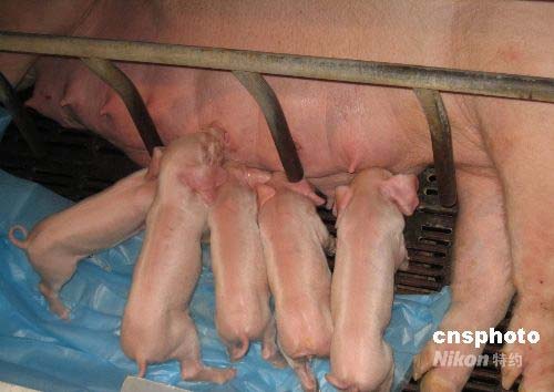 圖:廣東誕生首例體細胞五頭“克隆豬”