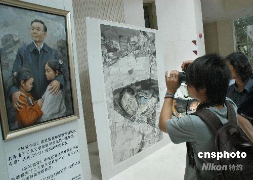 5月23日,“心系汶川·畫的慰問——廣州美術(shù)學(xué)院師生美術(shù)作品特別展”在廣州美術(shù)學(xué)院美術(shù)館展出,638件作品是該校離退休老藝術(shù)家、在校師生和畢業(yè)生等為四川汶川大地震災(zāi)區(qū)捐出的力作,義賣后款項將全部支援地震災(zāi)區(qū)。中新社發(fā) 羅仰明 攝