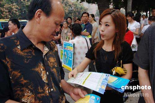 6月7日上午,中國(guó)高考開始,在福州各高考考場(chǎng)外,不少推銷員不厭其煩地向等候考生的家長(zhǎng)們推介出國(guó)留學(xué)、外語培訓(xùn)、暑期游學(xué)、暑期補(bǔ)習(xí)輔導(dǎo)等業(yè)務(wù)。隨著高考的舉行,暑期即將到來,“暑期經(jīng)濟(jì)”也隨之在社會(huì)生活中“翩翩起舞”。中新社發(fā) 鄭祚聲 攝