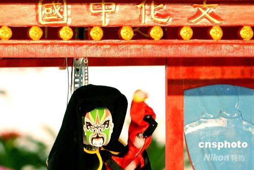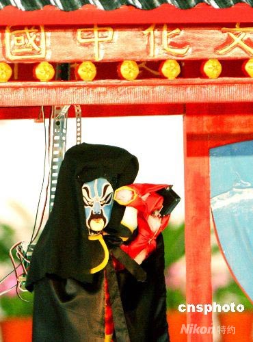 7月17日,蘇州碧波實(shí)驗(yàn)小學(xué)參賽機(jī)器人表演“川劇變臉”。當(dāng)日,在蘇州國際博覽中心舉辦的“RoboCup 2008機(jī)器人世界杯賽”青少年組機(jī)器人跳舞比賽場上,來自蘇州碧波實(shí)驗(yàn)小學(xué)參賽的“川劇變臉機(jī)器人”引人入勝。一個(gè)身披黑袍的機(jī)器人隨著川味十足的《唱臉譜》音樂,登臺表演2分鐘共變換了6張“川劇臉譜”。中新社發(fā) 蘇秀 攝