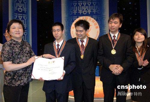 7月23日,中國科學(xué)技術(shù)協(xié)會書記處書記程東紅女士為榮獲第七屆海峽兩岸大學(xué)生辯論賽團體冠軍的來自臺灣的東吳大學(xué)代表隊頒獎。當日,歷時3天的第七屆海峽兩岸大學(xué)生辯論賽在福州圓滿落幕。中新社發(fā) 劉可耕 攝