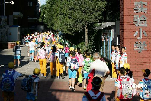 9月1日,北京市中小學(xué)開學(xué)第一天,增加體育課程成為新學(xué)年的最大亮點(diǎn)。據(jù)了解,北京市各區(qū)縣都要求學(xué)校把以往“零散”、“非正規(guī)”的體育活動(dòng)改成正式的體育課,并列入正式的課程表中,每天都要上一節(jié)體育課。中新社發(fā) 富田 攝