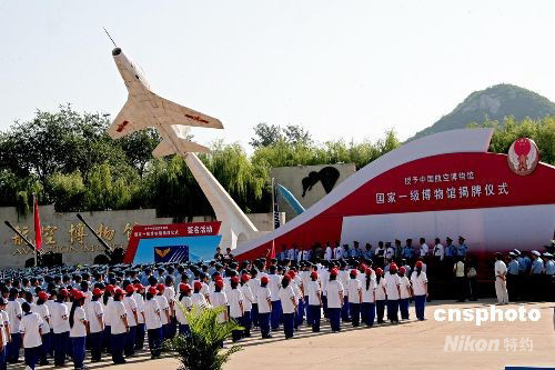 曾先后被中宣部等部委命名為“全國愛國主義教育基地”、國家旅游局評定為國家AAAA級景區(qū)的中國航空博物館,被國家文物局正式批準(zhǔn)為首批國家一級博物館。9月2日上午,中國航空博物館在該館舉行了揭牌儀式。中新社發(fā) 譚超 攝