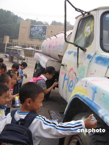 10月21日,長沙世界之窗舉行的“快樂秋游--做一天搗蛋的孩子”吸引了眾多小學生參與。平日里的乖孩子們“亂喊亂叫”、“亂摔亂打”、“亂涂亂畫”,肆無忌憚地把心中壓力和情緒釋放出來。中新社發(fā) 肖前輝 攝