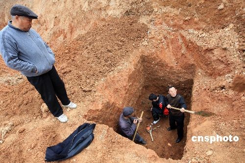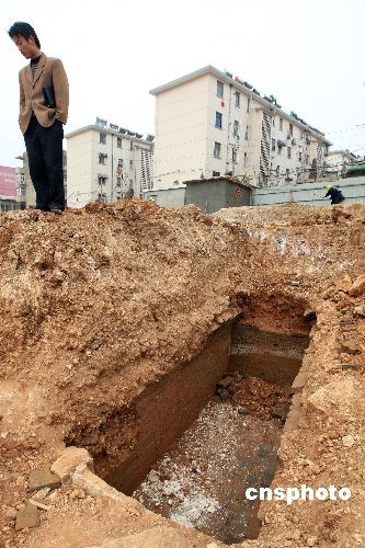 3月11日,安徽淮北市淮北商場(chǎng)建筑工地,考古人員正在對(duì)古漢墓進(jìn)行發(fā)掘。據(jù)考古人員介紹,截至目前,已發(fā)現(xiàn)兩漢時(shí)期的磚室和土坑墓葬30座,清理出古墓葬6座,出土漢代玉器、青銅器和陶器50余件,這些出土文物對(duì)研究漢代的墓葬風(fēng)俗提供了實(shí)物依據(jù)。中新社發(fā) 謝正義 攝