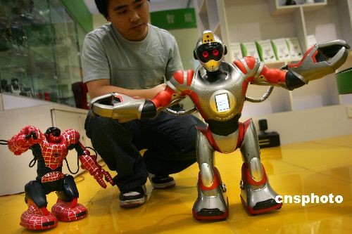 4月15日,北京首家機器人零售商店開業(yè)吸引顧客。該店位于中關村一電子商場內(nèi)。據(jù)該店羅經(jīng)理介紹,他們銷售的機器人有近百種,分為保潔型、娛樂型、教學型、家用型,價格從380元至58000元人民幣不等。保潔型機器人可每天定時清掃地面,自動躲避障礙物。娛樂型包括有機器人寵物、會跳舞的機器人等。教學型機器人一般用于高校計算機編程方面的教學。家用型機器人相對高端,臉龐分析系統(tǒng)可將陌生人的面容發(fā)送到主人手機上,具有“看家”功能,還能通過無線終端設備監(jiān)測家里老人的血壓脈搏等,發(fā)現(xiàn)問題會通知主人。中新社發(fā) 富田 攝