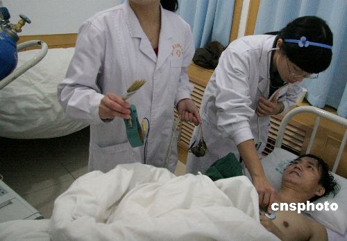 醫(yī)護(hù)人員在為獲救的船員查體。