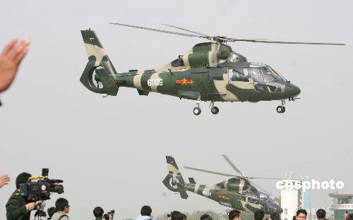圖為輪換出港的直升機(jī)駛離空軍基地。