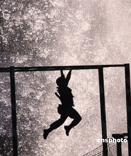 圖為參訓(xùn)士兵快速通過(guò)橫梯。