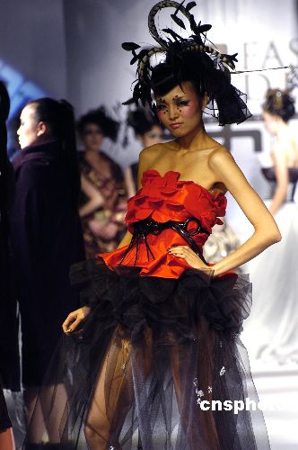 12月22日晚,上海時裝周推薦知名設計師Keeven/翟晏辛在“尚街LOFT”舉辦一場名為“胭—顏—演—晏”之暗夜“晶”靈的主題時裝秀。發(fā)布會服裝以黑色為主,凸顯了暗夜主基調(diào)。中新社發(fā) 董鴻景 攝
