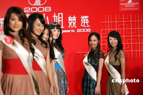 1月9日,參加香港TVB主辦的“2008國際中華小姐競選”的23位佳麗,在香港黃金海岸酒店靚麗登場,與傳媒會面。中華小姐競選本月26日將在廣東佛山舉行。中新社發(fā) 洪少葵 攝