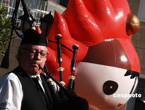 美國(guó)風(fēng)笛手祝福北京奧運(yùn)。