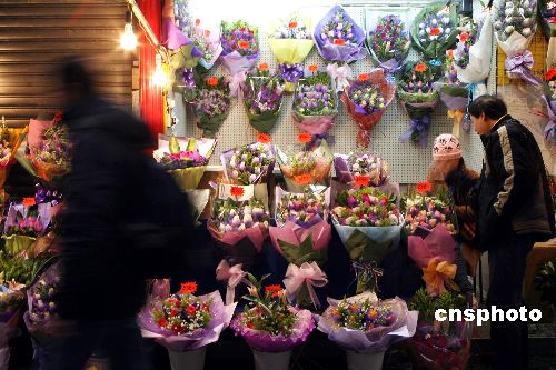 圖:情人節(jié)前夕香港街頭鮮花熱賣