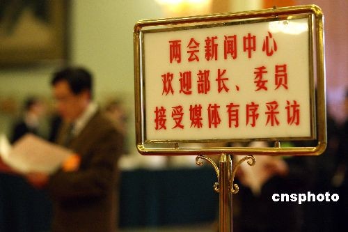 兩會新聞中心為方便媒體采訪“部長”設引導牌