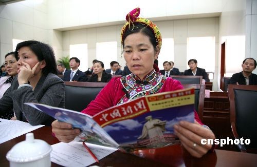 由中國(guó)新聞社出版的《中國(guó)新聞》兩會(huì)特刊,在全國(guó)兩會(huì)期間受到代表、委員的歡迎,他們?cè)u(píng)價(jià)《中國(guó)新聞》兩會(huì)特刊內(nèi)容權(quán)威、角度獨(dú)特、行文輕松活潑。圖為江西代表團(tuán)畬族人大代表在閱讀《中國(guó)新聞》兩會(huì)特刊。中新社發(fā) 吳慶才 攝