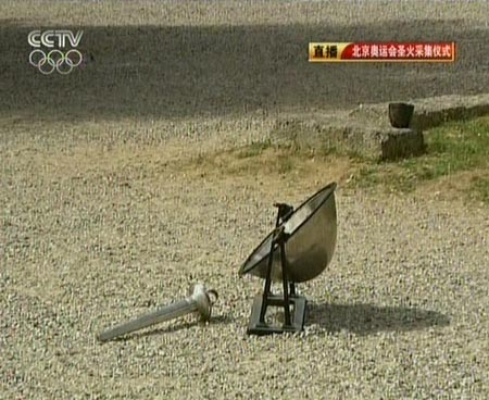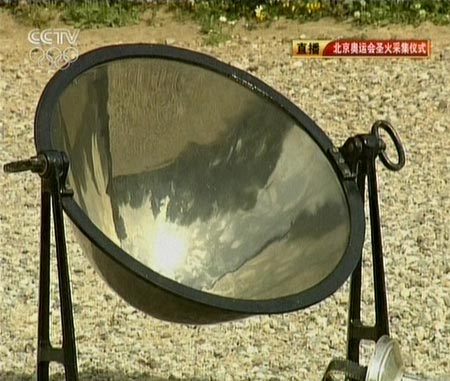 圖:北京奧運(yùn)會(huì)采火儀式凹面鏡準(zhǔn)備就緒