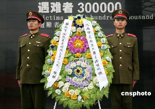 3月30日,解放軍戰(zhàn)士向南京大屠殺遇難同胞敬獻(xiàn)花圈。清明節(jié)臨近,眾多南京市民和外地游客來(lái)到侵華日軍南京大屠殺遇難同胞紀(jì)念館,以各種方式吊唁遇難同胞。中新社發(fā) 鐘山 攝
