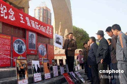 2008年4月11日是偉大的無產(chǎn)階級革命家、政治家、軍事家,原西北野戰(zhàn)軍第一兵團(tuán)司令員兼政委王震誕辰100周年紀(jì)念日。當(dāng)天,曾多次親耳聆聽過王震將軍教誨的退伍老兵、新疆庫爾勒市民陳伯壽,將自己精心收集整理的王震畫像等40多幅紀(jì)念圖板,擺放在人民廣場供廣大市民觀看接受教育,并以此種形式表達(dá)新疆庫爾勒老兵對王震將軍的一片緬懷思念之情。中新社發(fā) 吳寬宏 攝