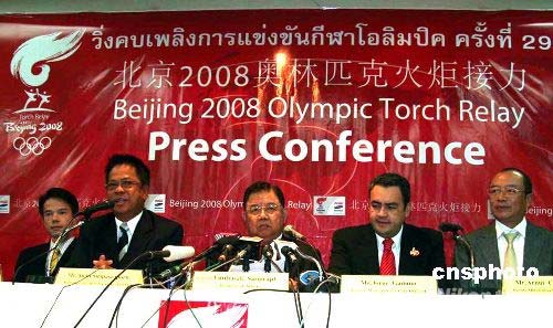 4月17日,泰國奧委會在國家體育館就奧運火炬?zhèn)鬟f活動舉行新聞發(fā)布會。泰國奧委會主席育塔薩先生(中)表示,曼谷為迎接北京奧運會圣火已經(jīng)做好一切準備。曼谷的火炬?zhèn)鬟f活動將在當?shù)貢r間19日下午三點開始。火炬將從曼谷唐人街——耀華叻路起跑,途經(jīng)富有泰國民族文化特色的地點,如大王宮、王家田廣場、民主紀念碑、五世王紀念廣場等,全程約10公里。 作者: 顧時宏