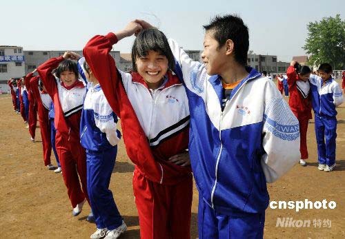 圖:山東棗莊中小學(xué)生跳起校園集體舞迎奧運(yùn)(3)