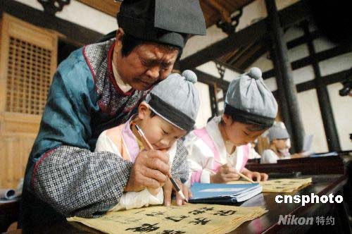 組圖:浙江蘭溪長樂村再現古代私塾