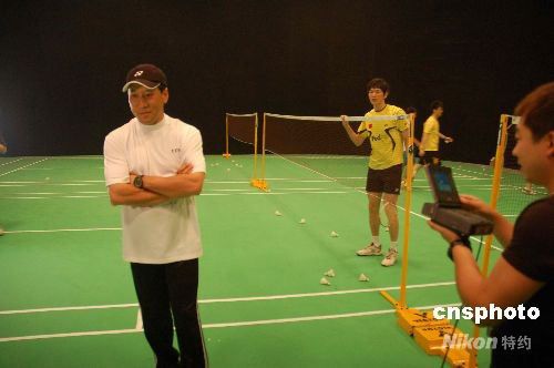 5月6日下午,中國(guó)羽毛球隊(duì)總教練李永波與羽球國(guó)手鮑春來,一同出現(xiàn)在北京奧運(yùn)環(huán)保公益廣告片的拍攝現(xiàn)場(chǎng)。由“中國(guó)環(huán)境意識(shí)項(xiàng)目”主辦、北京華映人國(guó)際影業(yè)投資有限公司拍攝的北京奧運(yùn)環(huán)保公益廣告系列片。此次李永波出演的《節(jié)約能源篇》是該系列片的最后一部。據(jù)悉,該片是“中國(guó)環(huán)境意識(shí)項(xiàng)目”的子項(xiàng)目,也是聯(lián)合國(guó)開發(fā)計(jì)劃署、北京奧組委和環(huán)境保護(hù)部的合作項(xiàng)目,目前已開始陸續(xù)在奧組委大型活動(dòng)、中央電視臺(tái)及奧運(yùn)賽場(chǎng)上循環(huán)播放。中新社發(fā) 潘旭臨 攝