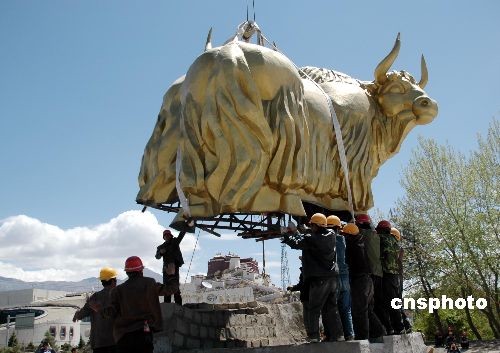 圖:拉薩市標銅雕“牦!卑峒(2)