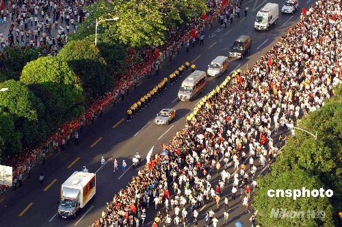 5月8日,奧運(yùn)圣火在廣東深圳傳遞,深圳百萬市民在深南大道兩旁追逐奧運(yùn)火炬?zhèn)鬟f。