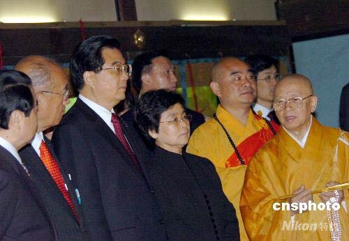 圖:胡錦濤參觀日本唐招提寺