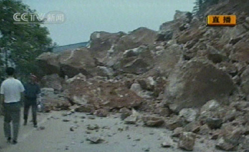 圖:綿陽市北川縣災(zāi)情嚴(yán)重 公路擰成“麻花”(2)