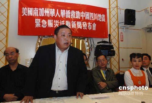 當地時間5月12日,美國南加州主要華人華僑團體向僑界發(fā)出緊急賑災倡議,呼吁華人華僑向四川汶川大地震災區(qū)踴躍捐獻。中新社發(fā) 張煒 攝