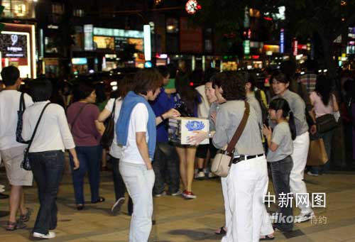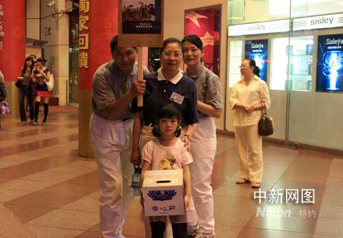 十七日晚,慈濟(jì)臺北分會的義工在臺北市的街上為四川震災(zāi)與緬甸風(fēng)災(zāi)募款,兒童也加入行列。作 者:陳立宇