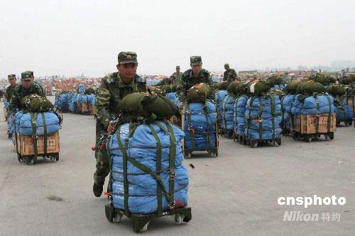 圖:中國空軍向四川災區(qū)空投帳篷成功