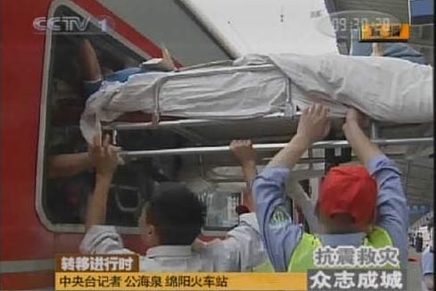 圖:綿陽火車站轉移大批傷病員(2)