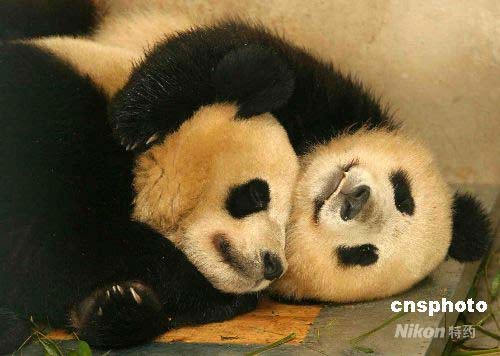 5月26日,來(lái)自四川臥龍的8只奧運(yùn)大熊貓?jiān)诒本﹦?dòng)物園開始了新的生活。此次進(jìn)京的8只奧運(yùn)大熊貓,是今年3月21日啟動(dòng)的“2008四川臥龍大熊貓奧運(yùn)北京行”投票評(píng)選活動(dòng)中,由廣大網(wǎng)民從16只大熊貓里選出來(lái)的。這8只熊貓,雌雄各半,現(xiàn)在的年齡都在1歲9個(gè)月之間,屬亞成體,正是最活潑可愛的年華。圖為兩只大熊貓?jiān)诨ハ嘁蕾酥菹ⅰ?中新社發(fā) 富田 攝