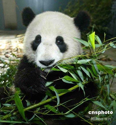圖為大熊貓在進食。 中新社發(fā) 富田 攝