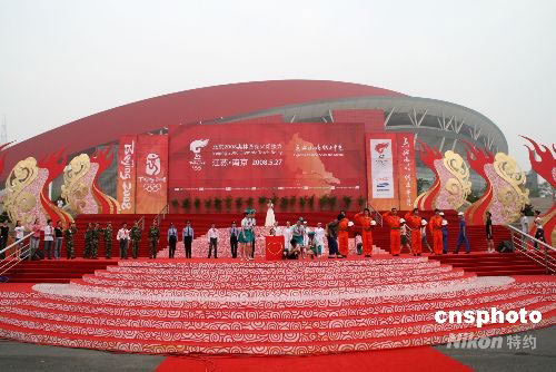 圖:圣火南京傳遞 藝術(shù)團為抗震救災表演