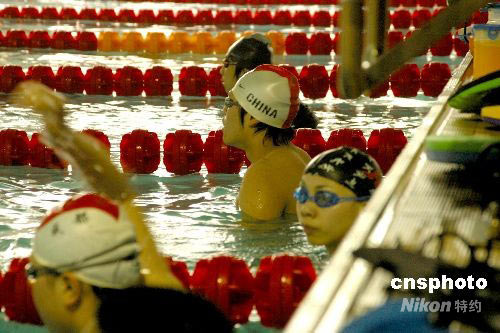 圖為四川省游泳隊(duì)隊(duì)員在河南鄭州進(jìn)行緊張的訓(xùn)練,全力備戰(zhàn)北京奧運(yùn)會(huì)。中新社發(fā) 史寶銀 攝