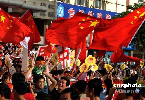 圖:安徽淮南民眾為奧運喝彩