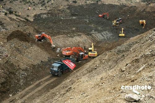5月31日,唐家山堰塞湖瀉流槽已基本挖通,目前堰塞湖的水位離堰塞湖槽的出水有7米的距離,將采取自然泄洪的方法分洪,不再進(jìn)行爆破,分洪的時(shí)間要根據(jù)上游的來(lái)水量確定,大概時(shí)間在6月1日到6月5日之間。中新社發(fā) 杜洋 攝
