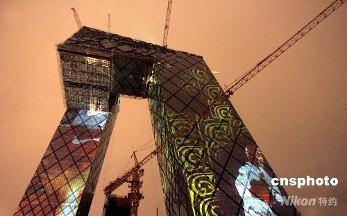 圖:巨型投影扮靚央視新址 體育精神鼓舞中國(guó)加油 (5)