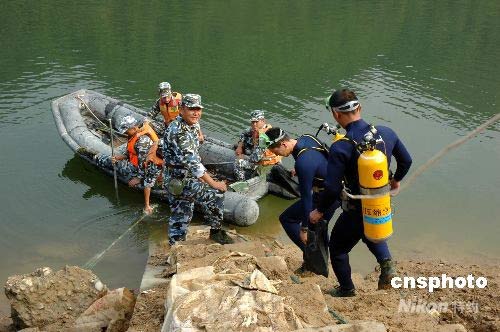 圖:海軍陸戰(zhàn)隊(duì)“蛙人”在震區(qū)危險(xiǎn)水庫(kù)排水減壓(4)