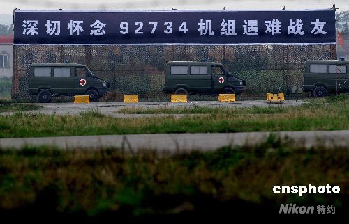 陸航團(tuán)官兵在鳳凰山機(jī)場內(nèi)懸掛“深切懷念92734機(jī)組遇難戰(zhàn)友”大型黑底白字條幅,追憶戰(zhàn)友。中新社發(fā) 劉新 攝