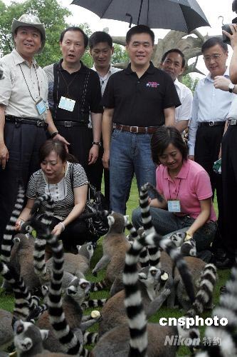 臺北市長郝龍斌一行到上海野生動物園參觀,并與狐猴“親密接觸”。中新社發(fā) 潘索菲 攝