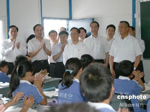 圖:曾蔭權(quán)何厚鏵看望災(zāi)區(qū)臨時(shí)學(xué)校學(xué)生
