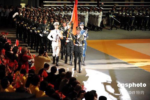 解放軍駐港部隊三軍儀仗隊列隊入場為匯演拉開序幕。中新社發(fā) 洪少葵 攝