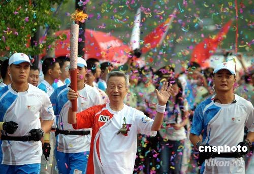 7月3日,奧運(yùn)火炬在陜西楊凌傳遞,旱地農(nóng)業(yè)生理生態(tài)學(xué)家、中國(guó)工程院院士山侖傳遞楊凌首棒火炬。中新社發(fā) 廖攀 攝