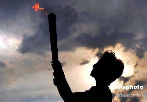 圖:內(nèi)蒙古火炬手手捧燃燒的“祥云”